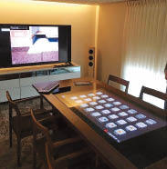 水平に配置した4?のタッチパネルディスプレーを中心に、テレビやプロジェクターなどさまざまなデバイスに情報を表示させることができる。必要な情報データをメニュー化することが可能で、静止画、動画、PDF、ウェブサイトなどのデジタルデータをテーブル上で自在に…